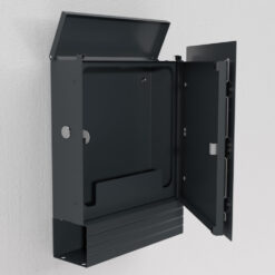Die Entleerung erfolgt über die nach links bzw. rechts schwenkbare Fronttüre. Dies ermöglicht eine schnelle und problemlose Entleerung. Eine Kante im unteren Bereich verhindert ein Herausfallen der Post beim Öffnen.